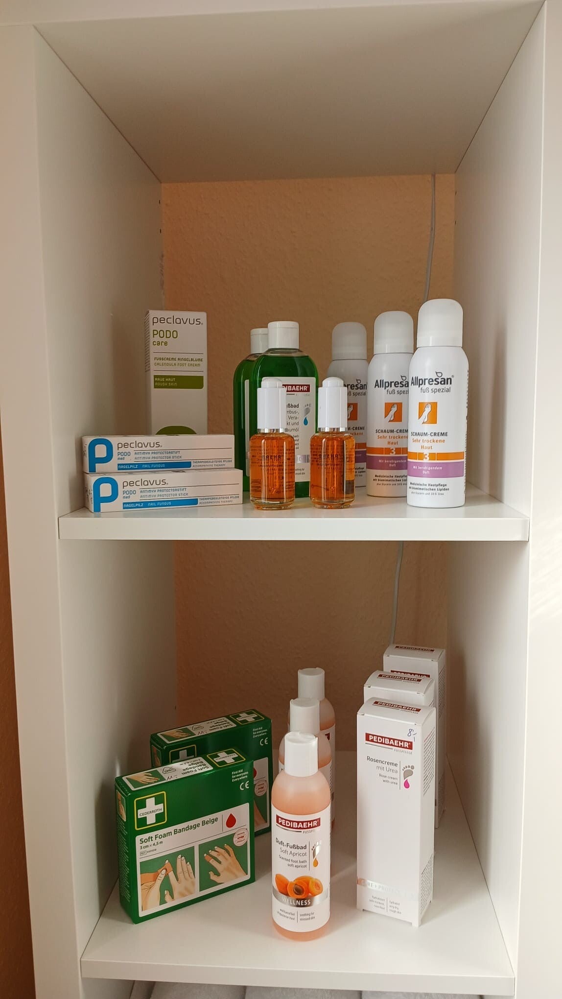 Gerne berate ich Sie persönlich, welche Pflege für Ihre Füße am sinnvollsten ist. Gemeinsam wählen wir die Produkte aus, die zu Ihrem Hautzustand und Ihrem Alltag passen, damit Sie sich Schritt für Schritt wohler fühlen können.
